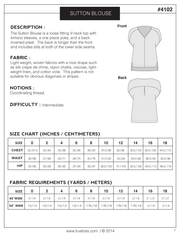 Geçen sene viskoz kumaştan diktiğim bluzum. Kalıp olarak True Bias tarafından hazırlanan Sutton modelini kullandım (http://shop.truebias.com/product/sutton-blouse). V yakalı, kimono kollu ve arkasında ters pilesi var bir tane. Yanda asimetrik yırtmaçları var. Roba modelinin belli olması için zig-zag süs diktim. Yaz için dikişi çok kolay güzel bir bluz oldu.
